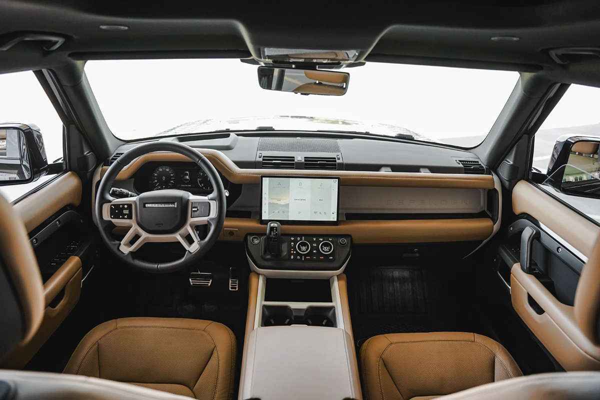 Experience true luxury inside the Land Rover Defender. The interior of the Land Rover Defender is crafted with premium materials, advanced technology, and a sleek design that defines modern comfort. From leather seats to an intuitive infotainment system, every detail inside the Defender is designed to deliver elegance, .